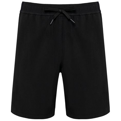 92% polyester/ 8% élasthanne. Matière ultra confortable. 2 poches devant. 2 bandes maille filet contrastées et appliquées sur les côtés. Ceinture élastiquée en 2 parties avec cordon de serrage plat et finition embout plastique. Finition double aiguille sur bas de vêtement. Etiquette de marque Tear-away.