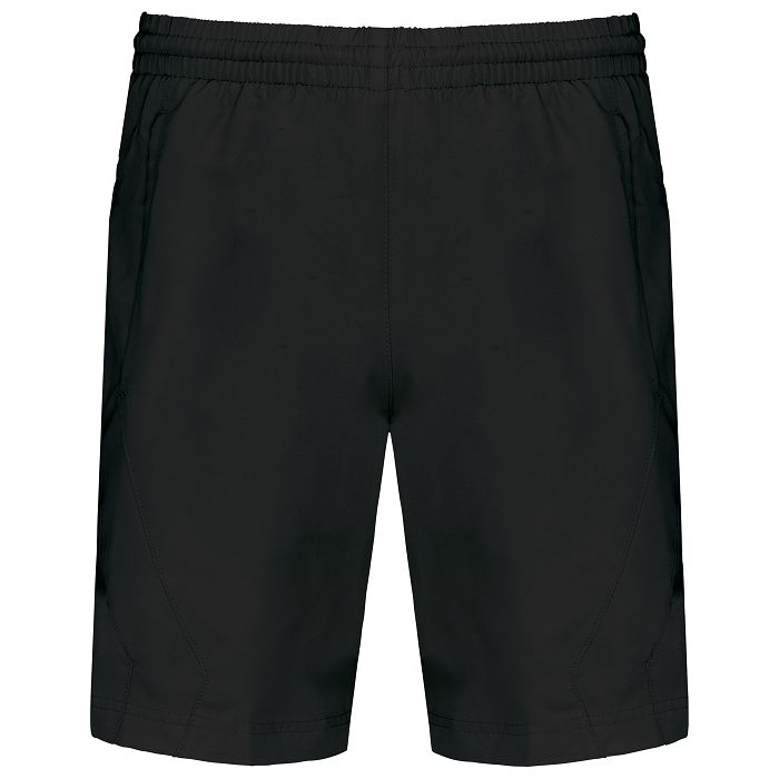 100% polyester à séchage rapide. 2 poches côtés. Taille élastiquée avec cordon de serrage. Slip intégré en maille filet. Découpe côté ton sur ton.