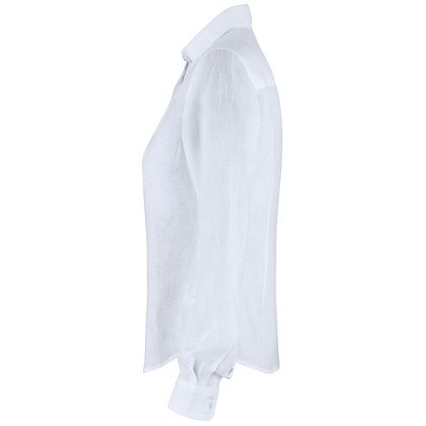 Chemise femme haut de gamme en pur lin - Tissu léger et aéré avec une texture spécifique - Coupe moderne - Confort optimal - Coutures contrastées - Coupe Homme a/ poche poitrine - Poignets réglables 2 boutons - logo CB aux poignets