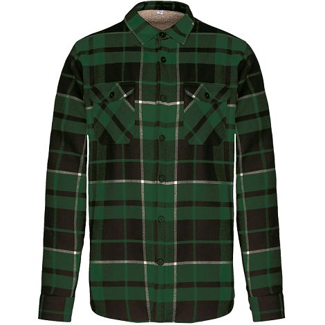 100% coton. Coton flanelle. Doublure corps sherpa 100% polyester. Manches doublées et matelassées 100% polyester taffetas. Surchemise très douce et ultra chaude. 2 poches poitrine avec rabat. Patte de boutonnage classique. Poignets boutonnés réglables. Bas arrondi. Pas d'étiquette de marque au col, uniquement une puce de taille pour faciliter la personnalisation. Certifié STANDARD 100 by OEKO-TEX® N° CQ 1007/8, IFTH.