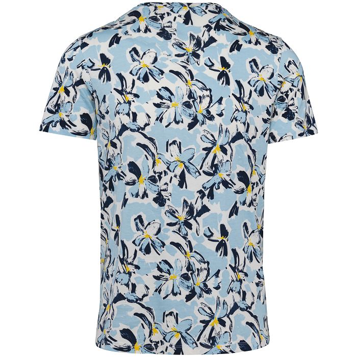 100% coton biologique. Coton peigné. Coupe ajustée. Coutures latérales. Lavé aux enzymes. Maille aux motifs imprimés continus. Encolure et finition bande de propreté intérieure en matière principale. Finition double surpiqûre bas de manches et bas de vêtement. Renfort épaule en matière principale. Certifié STANDARD 100 by OEKO-TEX®N°CQ1007/7, IFTH.