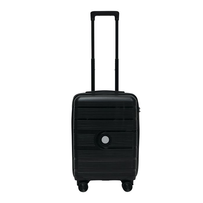 Trolley YORK : fabriqué dans une matière particulièrement résistante, possibilité de rangement des deux côtés, avec poche en filet fermeture éclair et sangle de fermeture élastique, système trolley verrouillable et rétractable, poignée, 4 roues doubles à 360° et à roulement doux, logo métallique interchangeable à l’avant, fermeture avec combinaison – correspond aux tailles "cabine" des compagnies low-cost.